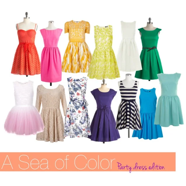 You can never go wrong with a girly party dress. With so many different colors, prints and fabrics to choose from it's hard to just pick one. I love a dress that can transition from season-to-season, by adding accessories or tights. A forest green dress like the one from Modcloth, can look just as in season in summer as it does during the holidays. I would switch out the black belt for a woven or braided belt and possibly an good statement necklace.